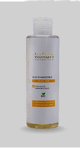 L’Olio di Mandorle Dolci Puro 100% firmato Kokun Cosmetics è un cosmetico bio naturale, privo di additivi e profumi, pensato per il benessere quotidiano della pelle.
